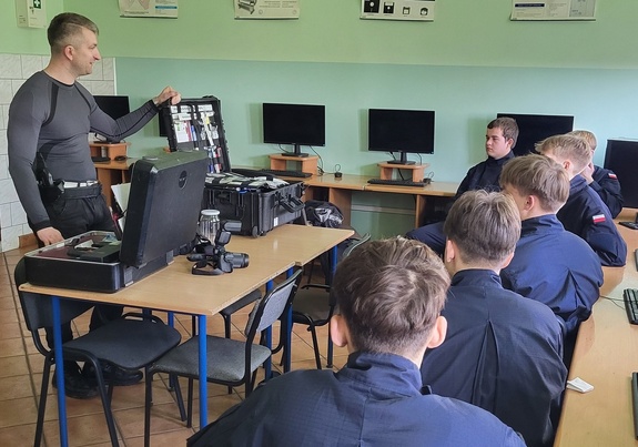 O pracy policyjnego technika kryminalistyki mogli posłuchać uczniowie klasy mundurowej Zespołu Szkół Technicznych w Kcyni. Funkcjonariusz opowiedział o specyfice swojej służby oraz zaprezentował sprzęt wykorzystywany przez niego na miejscu zdarzenia.