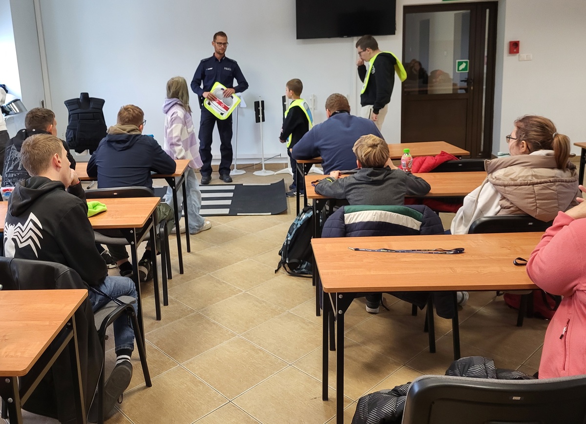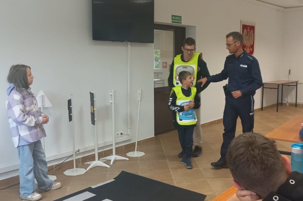 Policjanci zaznaczyli również, jak ważne jest używanie odblasków w okresie jesienno-zimowym, gdy szybko zapada zmrok, co znacząco pogarsza widoczność na drodze. Z tej okazji, w ramach akcji „Świeć przykładem-noś odblaski" wszyscy wychowankowie otrzymali od funkcjonariuszy odblaskowe elementy.