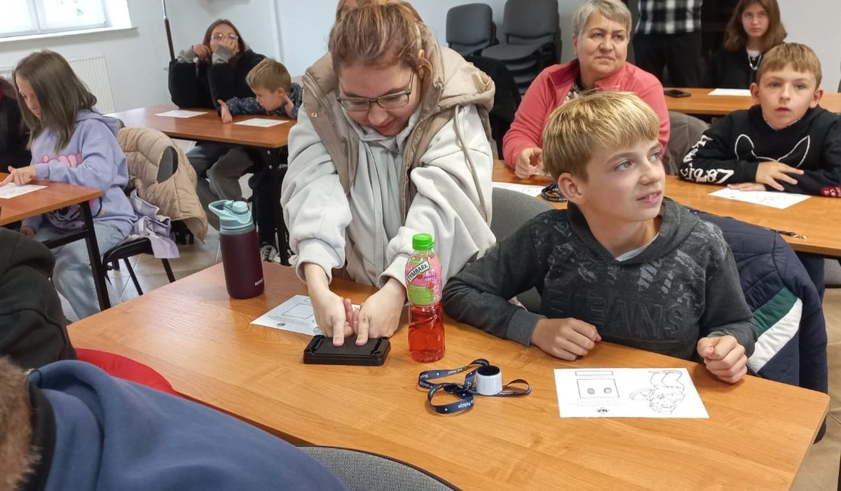Po głównej części ukierunkowanej na bezpieczeństwo przyszedł czas na atrakcje przygotowane przez stróżów prawa. Pierwszą była możliwość wykonania odcisków palców, z czego skorzystali wszyscy uczestnicy spotkania. Było to powodem wielu uśmiechów i radości.