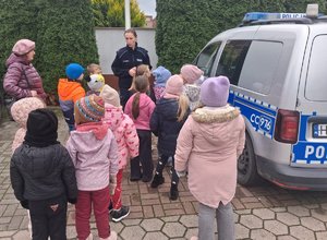 Stróże prawa przypomnieli najmłodszym jak powinno wyglądać prawidłowe zachowanie w rejonie przejść dla pieszych oraz z jakimi zagrożeniami dzieci mogą się spotkać na drodze. Policjanci opowiedzieli również dlaczego w okresie jesienno-zimowym tak ważne jest, aby nosiły one elementy odblaskowe, które poprawiają ich widoczność. Każdy z gości otrzymał od funkcjonariuszy odblask w postaci policyjnego radiowozu.