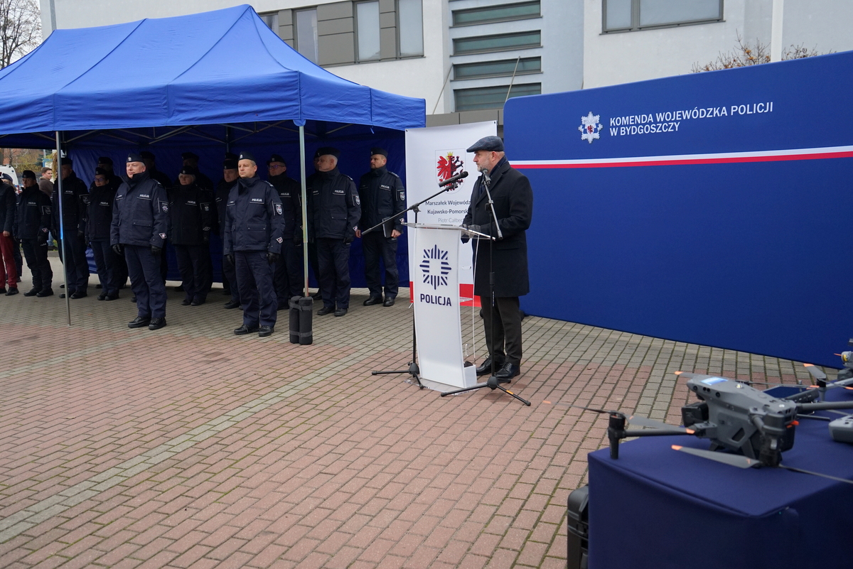 Ostatni z projektów „Zakup bezzałogowych statków powietrznych dla kujawsko-pomorskiej Policji” pozwolił na zakup 8 bezzałogowych statków powietrznych (BSP). Zakupione BSP wspomagać będą kujawsko-pomorskich policjantów między innymi w realizacji działań związanych z wystąpieniem sytuacji kryzysowych np. pożary lasów czy składowisk odpadów, gdzie zanieczyszczenie powietrza jest większe, powodzie, zniszczenia po wichurach, czyli zawsze gdy przebywanie ratowników w zasięgu oddziaływania zagrożenia stanowi dla nich bezpośrednie ryzyko. BSP służyć będą do monitorowania obszarów zagrożonych wystąpieniem klęski żywiołowej lub poważnej awarii, oceny stopnia zagrożenia i zasięgu jego oddziaływania, a także poszukiwania osób znajdujących się na zagrożonym obszarze. Pozwolą na skrócenie czasu potrzebnego do zlokalizowania potencjalnych ofiar i ludzi oraz szybsze udzielenie niezbędnej pomocy. BSP sprawdzą się również w akcjach poszukiwawczo-ratowniczych prowadzonych na dużych obszarach, często trudnodostępnych, gdzie pokonanie przeszkód zajmie mniej czasu i jest bezpieczniejsze. Zakupione BSP trafią do: Komendy Wojewódzkiej Policji w Bydgoszczy - 4 kpl., i po jednym dla komend w: Grudziądzu, Mogilnie, Radziejowie i Tucholi.