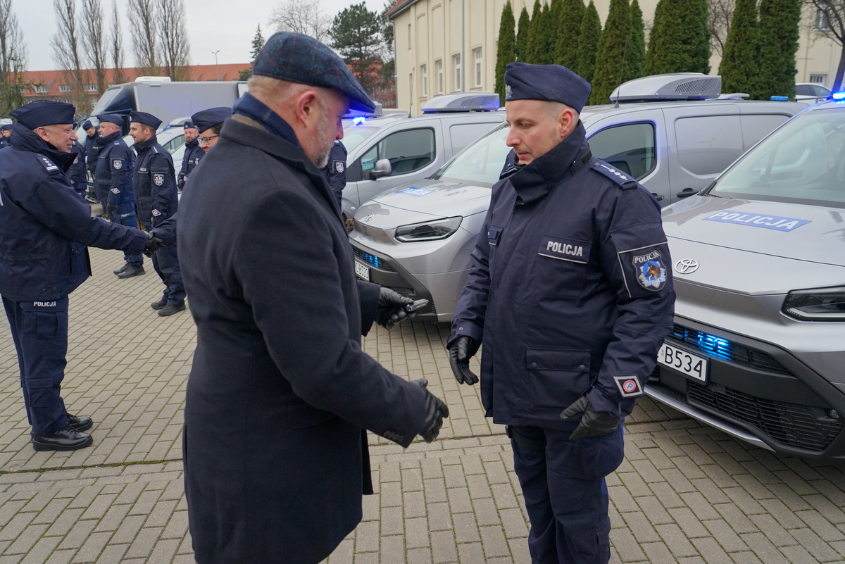 Marszałek Województwa Kujawsko-Pomorskiego Pan Piotr Całbecki, reprezentujący instytucję zarządzającą programem „Fundusze Europejskie dla Kujaw i Pomorza 2021-2027”, symbolicznie przekazał Pierwszemu Zastępcy Komendanta Wojewódzkiego Policji w Bydgoszczy inspektorowi Marcinowi Woźniakowi, zakupiony sprzęt.