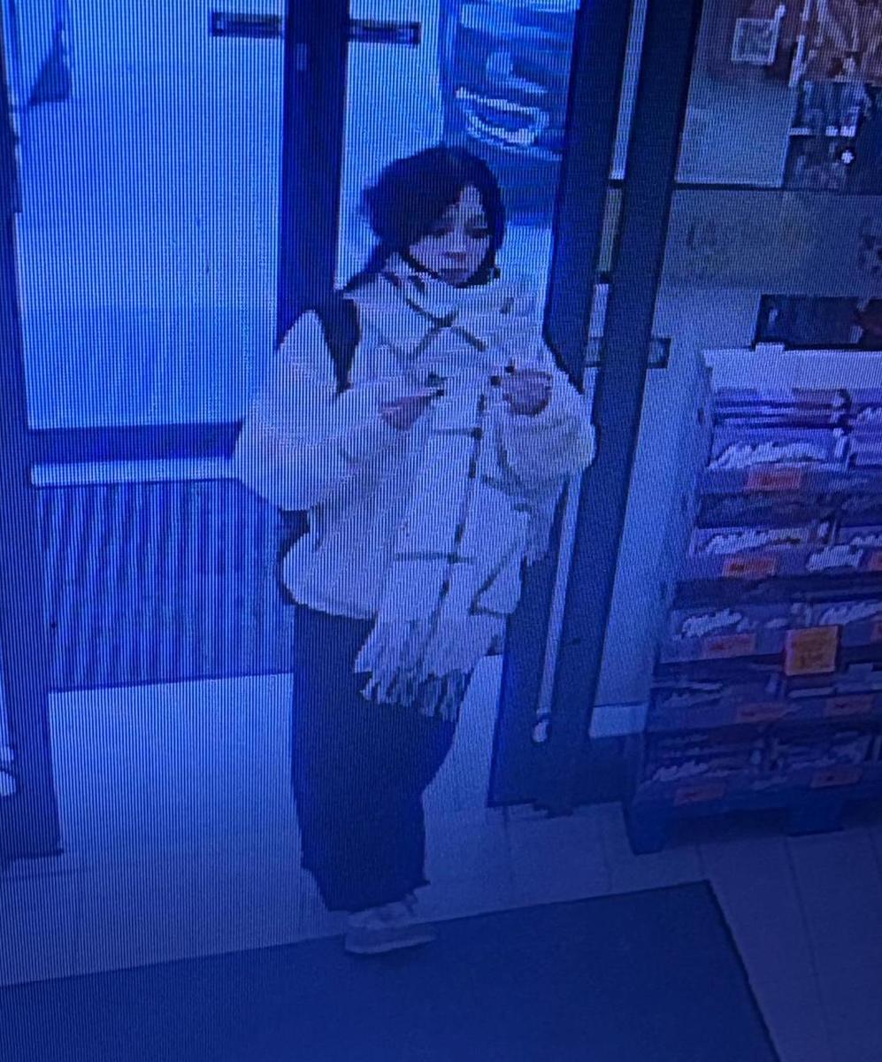 - w Szubinie młoda kobieta ubrana w kurtkę jasnego koloru, długi szal w kratkę, szczupła w ciemnych włosach ukradła artykuły spożywcze ( L. dz. 4554/25)