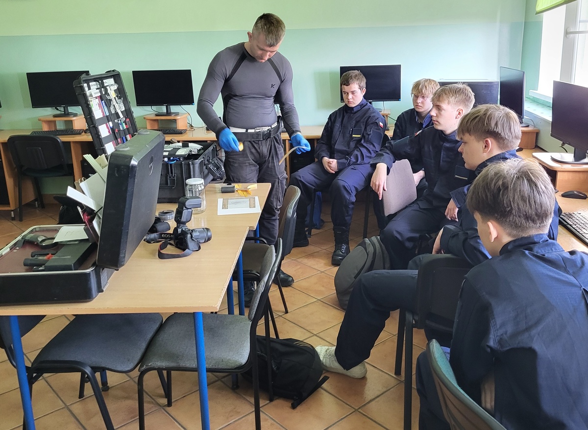 O pracy policyjnego technika kryminalistyki mogli posłuchać uczniowie klasy mundurowej Zespołu Szkół Technicznych w Kcyni. Funkcjonariusz opowiedział o specyfice swojej służby oraz zaprezentował sprzęt wykorzystywany przez niego na miejscu zdarzenia.