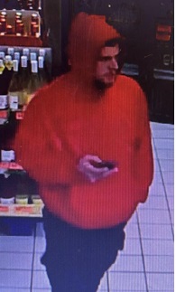 • mężczyzna w wieku około 20–30 lat, ubrany w spodnie koloru ciemnego oraz czerwoną bluzę z kapturem ukradł alkohol (L. dz. 1444/26).